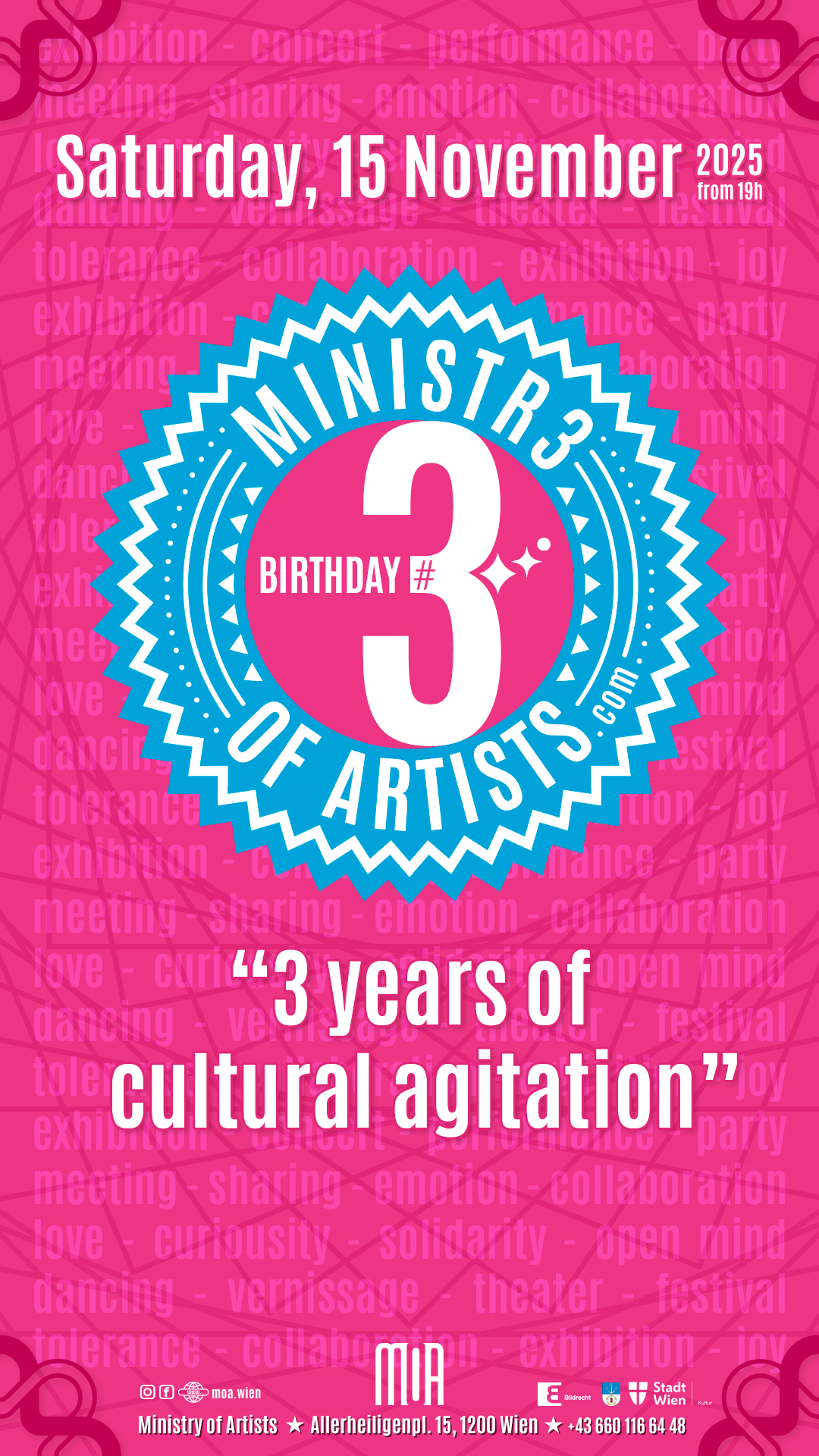 • Wir danken der Stadt Wien Kultur | MA 7, Brigittenau und Bildrecht herzlich für die essentielle Unterstützung! | We sincerely thank the City of Vienna Culture | MA 7, Brigittenau and Bildrecht for the essential support!
