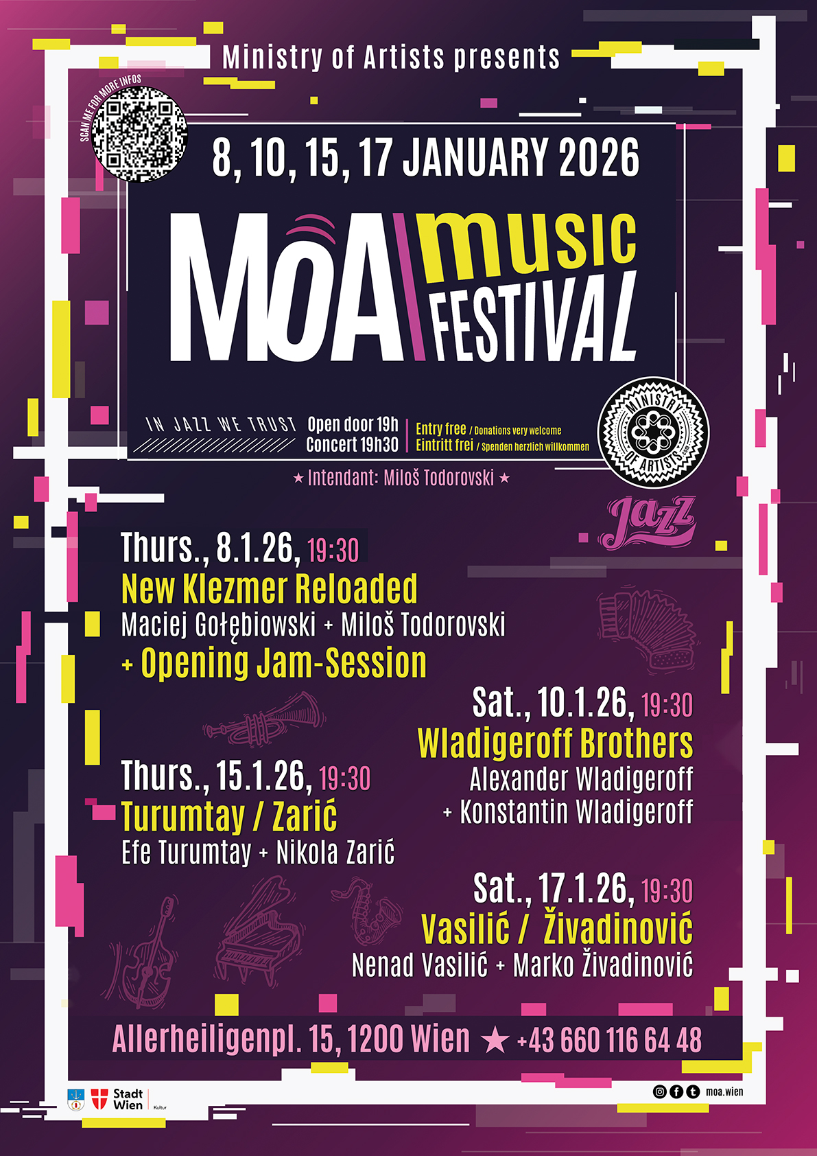 MoA Music Festival 2026 feiert die musikalische Vielfalt der österreichischen Hauptstadt und lädt das Publikum ein, die reiche kulturelle Textur Wiens durch die Augen und Ohren seiner talentierten Künstler:innen zu erleben. Das Festival verspricht eine faszinierende Reise durch die Straßen und Gassen Wiens, wo jede Melodie eine Geschichte erzählt und jeder Rhythmus den Pulsschlag einer Community widerspiegelt.